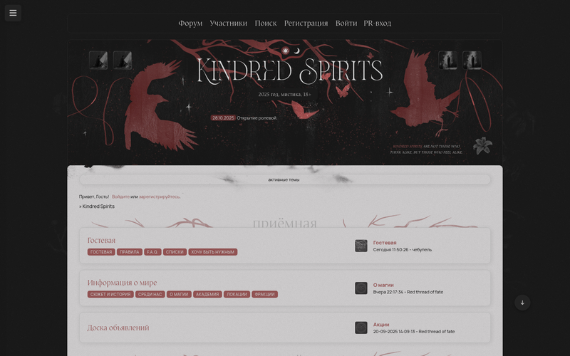 Авторские миры — здесь представлены форумные игры, действие которых происходит в придуманном мире. Эти ролевые игры никак не связаны с авторскими произведениями, не являются фэндомами.