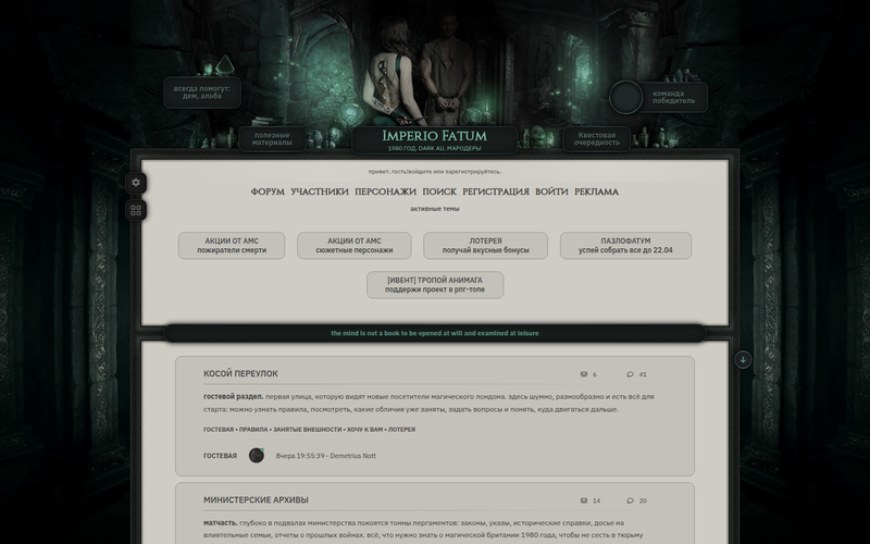 Здесь собраны ролевые форумные игры, которым свойственны методы как активного так и пассивного способа ведения ролевой.